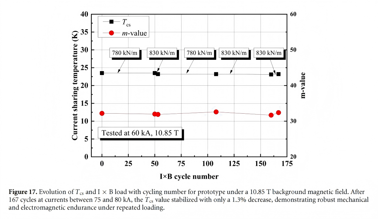 值得关注的是,这是目前公开文献中首个在830 kN/m电磁负载下可稳定工作的堆叠型CICC导体实例,为未来强场聚变磁体工程化发展提供了宝贵实验参考。展望未来,上海超导将继续致力于高品质REBCO带材研发与规模化量产,携手国内外科研机构,共同推动可控核聚变应用发展。